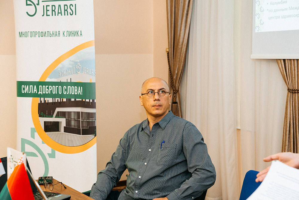 Во время мероприятия представители клиники JERARSI рассказали слушателям об особенностях медицины в Грузии, о гостеприимстве страны, о возможностях частной медицины. Большое внимание было уделено и описанию возможностей именно своей клиники. Специалисты отметили направления, которыми интересуются иностранные пациенты, подчеркнули возможности технической и материальной базы. Для многих гостей презентации было интересно узнать и имена врачей, которые стали известны во всем мире и сегодня являются действующими сотрудниками клиники. Еще одним поводом для гордости является и отдел сопровождения JERARSI. В настоящее время, когда медицинский туризм невозможен без знания иностранного, специалисты отдела разговаривают и принимают документацию на 7! языках. А также организовывают комфортабельное путешествие с момента обращения пациента и до его выписки: включая размещение, перелеты и другие аспекты.